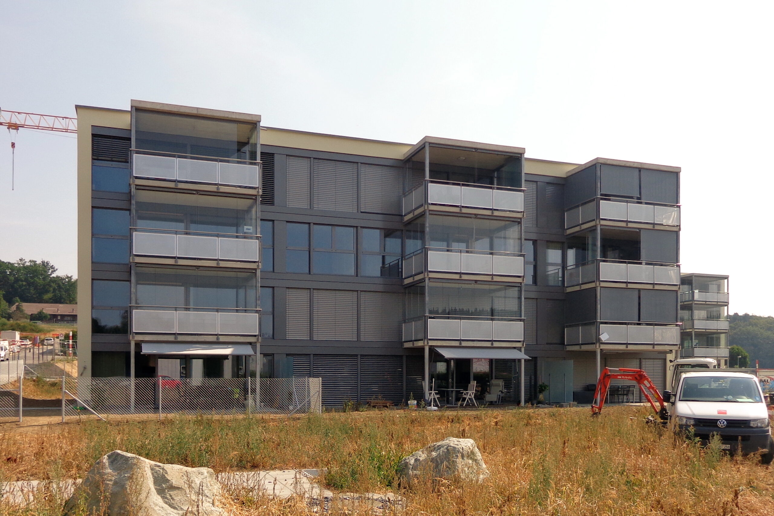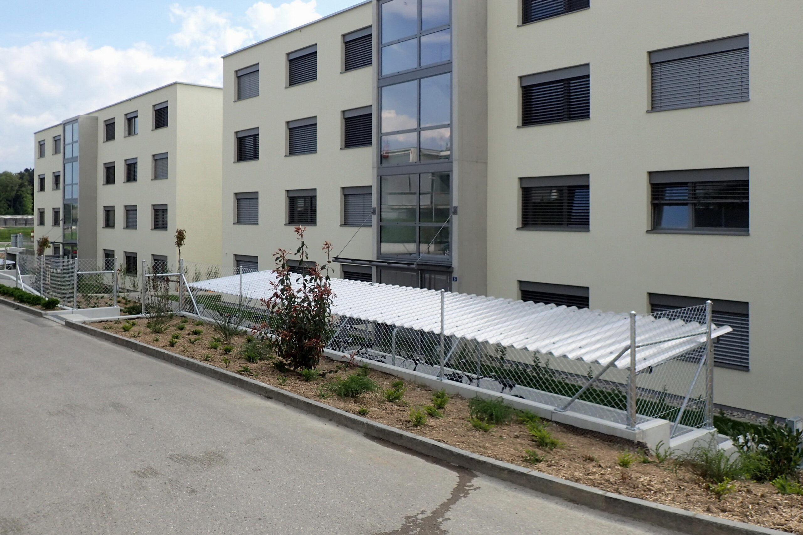 Neubau von 3 Mehrfamilienhäusern mit jeweils 8 x 4½ Zimmer Wohnungen und 4 x 3½ Zimmer Wohnungen. (vier Vollgeschosse). Sitzplätze im Erdgeschoss gedeckt. Sämtliche Balkone verfügen über eine Balkonverglasung. Die unterirdische Einstellhalle bietet Platz für 44 Personenwagen, 3 Mofas als auch Veloabstellplätze und ist jeweils direkt zugänglich.